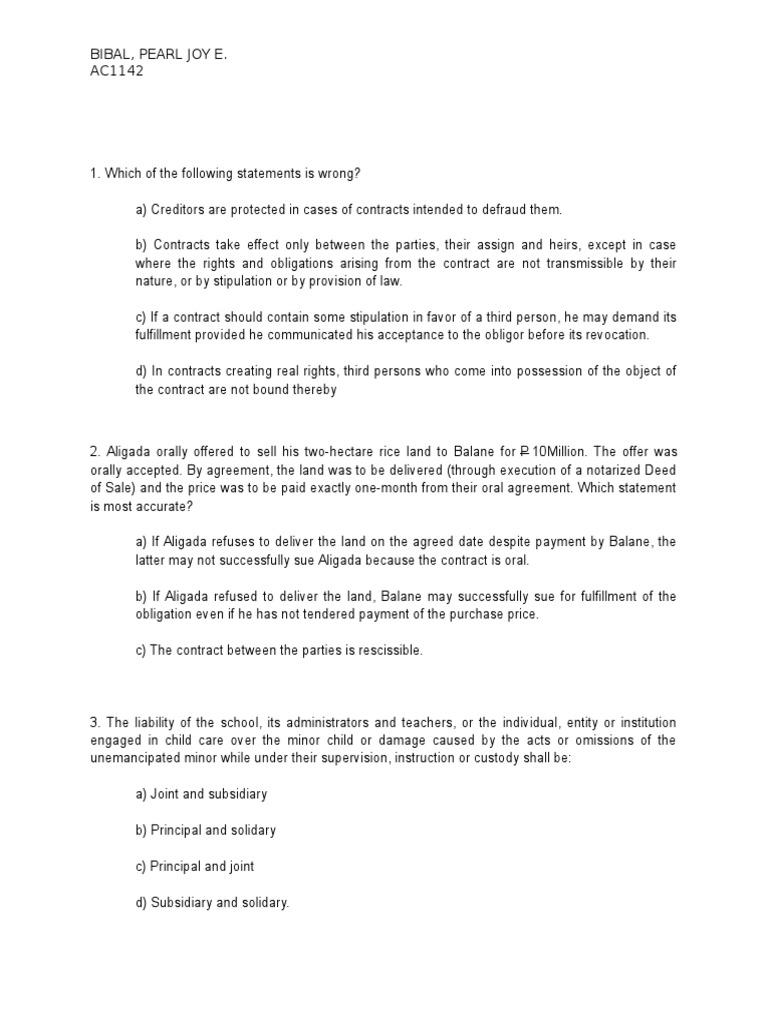 (1) when a civil obligation has been extinguished by prescription or discharged in when the law requires a contract to be in written form, the contract may not be proved by testimony or by presumption, unless the written instrument. The law of obligations is one of the component private law elements of the civil system of law. To the extent interest expense generated by hedging obligations that have been terminated is included in consolidated interest expense prior to the date of the event for which the calculation of the consolidated ebitda to consolidated interest expense. Jaypee is obliged to give jaboom his car on dec. The undertaking of a bailee to deviate from the biblical laws of bailees, for example an unpaid bailee who undertakes to pay even in.